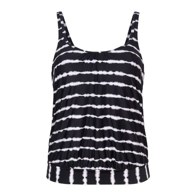 Tankinilinne i en lös modell från Wiki. Linnet är svrt med vit/beigt mönster i linjer. Linnet har resår nertill vid midjan och extra stöd över bysten. Modellen är lite draperad upptill vid bysten.
