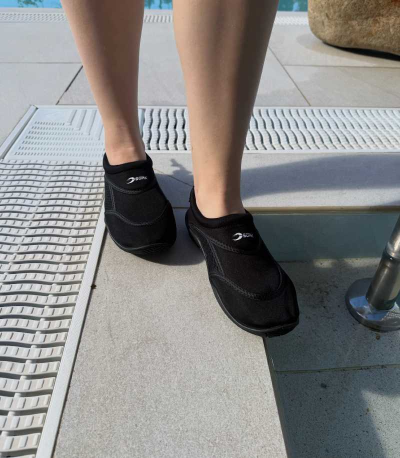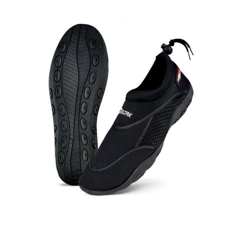 Badskor/aquashoe är våran mest sålda modell. Basic erbjuder enstorlekar för att få så perfekt passform som möjligt. En modell som passar många olika fotformer. Badskon har uttagbar sula om man önskar lägga i ilägg. Justerbar vid hälen med dragskon som säkerställer att den sitter kvar ordentligt, även i vågorna. Nertill vid utsidan och insidan sitter ett meshfoder som gör att vattnet rinner ut. på både höger och vänster sida sitter ett meshfoder som gör att vattnet rinner ut och inte stannar i skon. Skyddar din fot både hygienisk och emot vassa föremål. Det mjuka neoprenet sitter skönt emot foten.