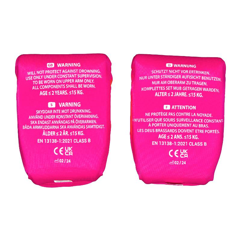 Armpuffar i punkteringssäker modell. Rosa/grön färg. Hela armkudden är fylld med foam och blåses inte upp. Både in och utsidan har samma material. Mjuk följsam och skön emot huden. Innåtvända sömmar ger maximal komfort och minskar skavsårsrisken. Knalliga färger för hög synlighet i både mörka och ljusa vatten. Smart miljöval eftersom armkudden kan ärvas eller säljas vidare.