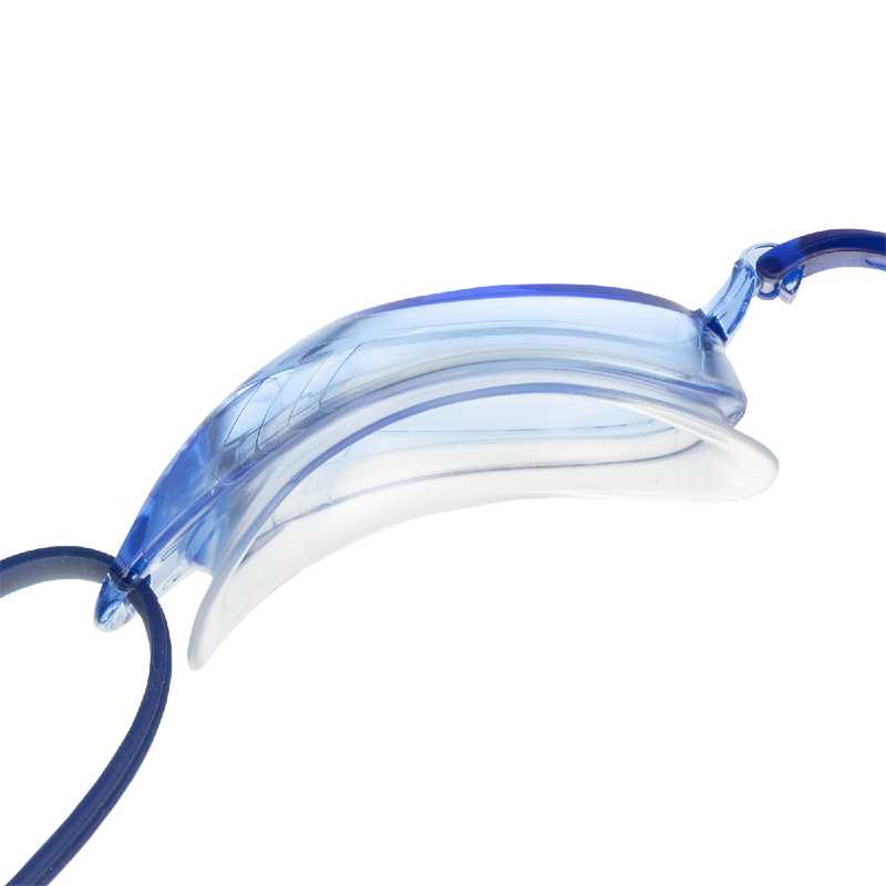 Simglasögon för träning och tävling Glide. Lättjusterad/lättanpassad modell där man kan byta näsbryggan till andra storleken. Tre olika storlekar för att just få exakt rätt anvstånd mellan ögonen. Dubbel silikonband bakom huvudet fördelar trycket över ögonen. Snabbjustering av silikonbandet bakom huvudet. En plan lins som ger synfält rakt fram.