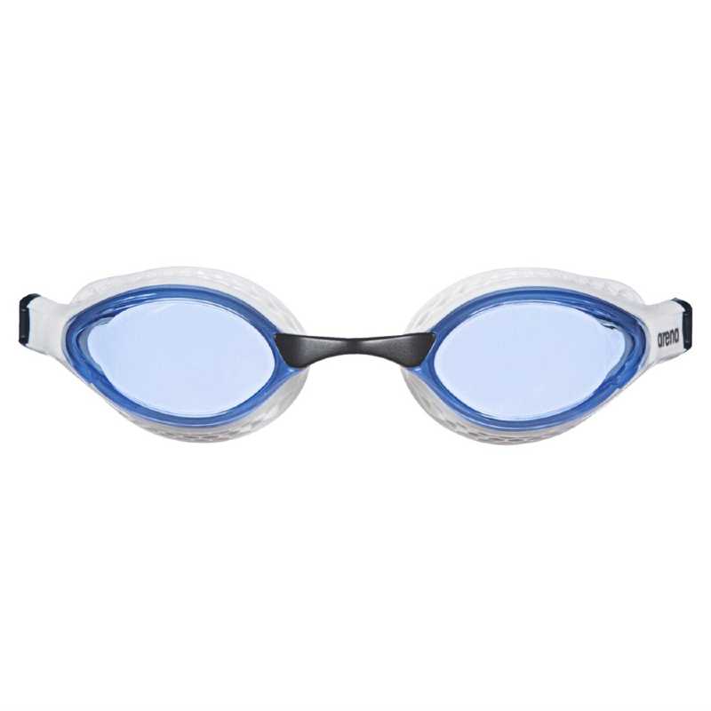 Simglasögon Air speed från Arena. En modell som passar för dig som är i början av din simkarriär eller motionssimmar. Svagt böjd i linsen som ger ett strömlinjeformad kopp och lågt motstånd. Utbyttbara näsbryggor i 3 olika storlekar. Silikonkanten runt ögonen har honey comb form, vilket fördelar ut trycket runt ögonen. Tvådelat silikonband bakom huvudet med manuell justering. Modellen har en ljusblå färg på linsen och passar bra till innomhussimning och när det är molnigt ute.