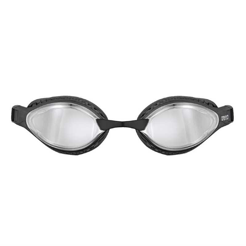 Simglasögon från Arena med silverfärgad mirrorlins. Svagt böjd i linsen som ger ett strömlinjeformad kopp och en låg profil. Utbyttbara näsbryggor i 3 olika storlekar. Silikonkanten runt ögonen har honey comb form, vilket fördelar ut trycket runt ögonen. Tvådelat silikonband bakom huvudet med manuell justering. Simglasögonen levereras i pappersförpackning.