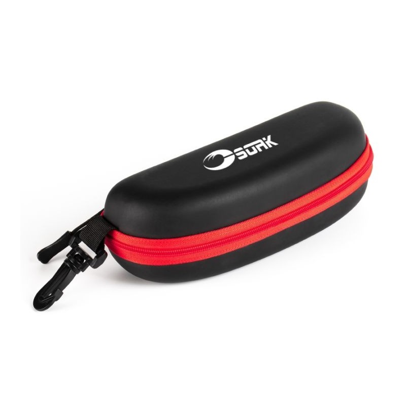 Simglasögonfodral svart/röd från Soak med karbinhake och dragkedja. Fodralet är hårt och är PVC-fri.