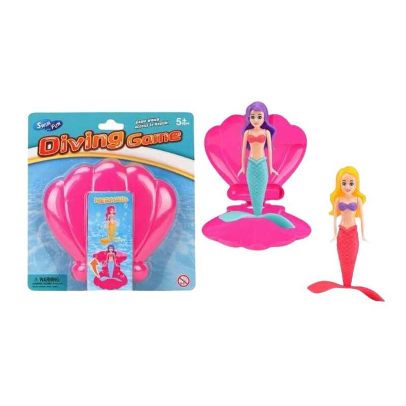 En mycket gullig och välarbetad dykleksak i form av en sjöjungfru som förvaras i ett vackert snäckskal. Perfekt för lek i poolen eller vid bad. Sjöjungfrun ligger i sitt snäckskal och blir en rolig skatt att dyka efter.