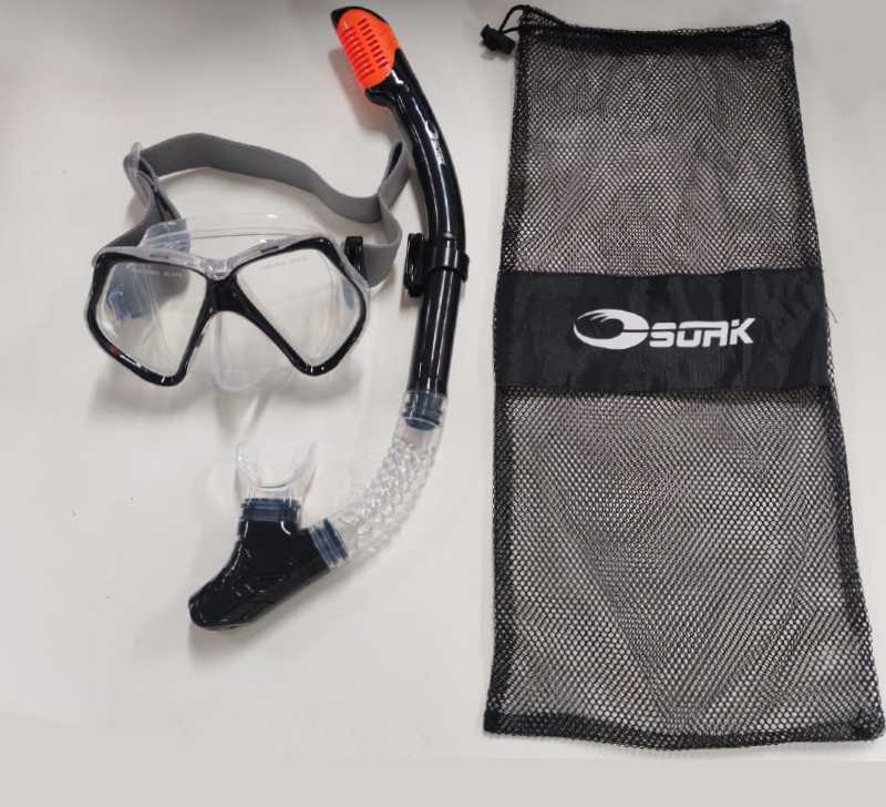 Snorkeln är utrustad med Dry Top som förhindrar att vatten kommer in, samt ett centrerat bett som gör snorklingen naturlig och bekväm. Maskens elastiska band sitter mjukt runt huvudet och fastnar inte i håret. Kan enkelt justeras för optimal passform.